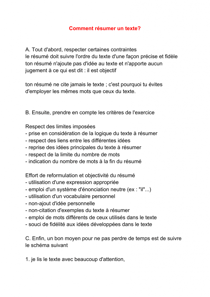 طريقة تلخيص نص فرنسي بكالوريا طريقة تلخيص نص فرنسي بكالوريا comment écrire et résumer un texte تحميل الملف PDF